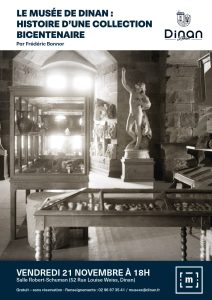 La conférence intitulée « Musée de Dinan : histoire d’une collection bicentenaire » se déroulera le vendredi 21 novembre à 18h, à la Salle Robert-Schuman (52, rue Louise Weiss, Dinan).
