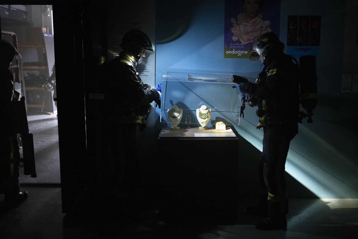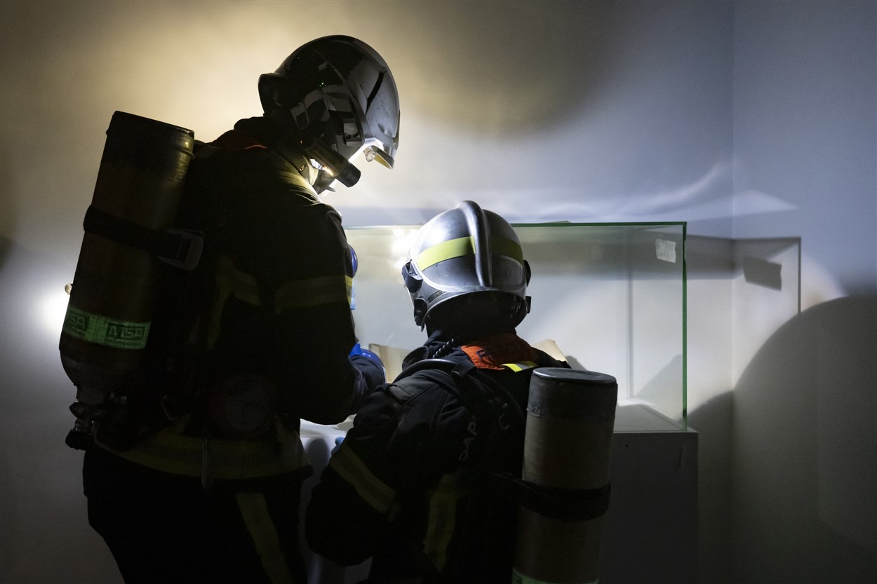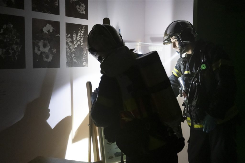 L’exercice grandeur nature du 13 novembre dernier s’est concentré sur l’évacuation des œuvres de l’exposition temporaire. Un départ de feu dans l’atelier jouxtant la salle d’exposition était simulé par une machine à fumée.